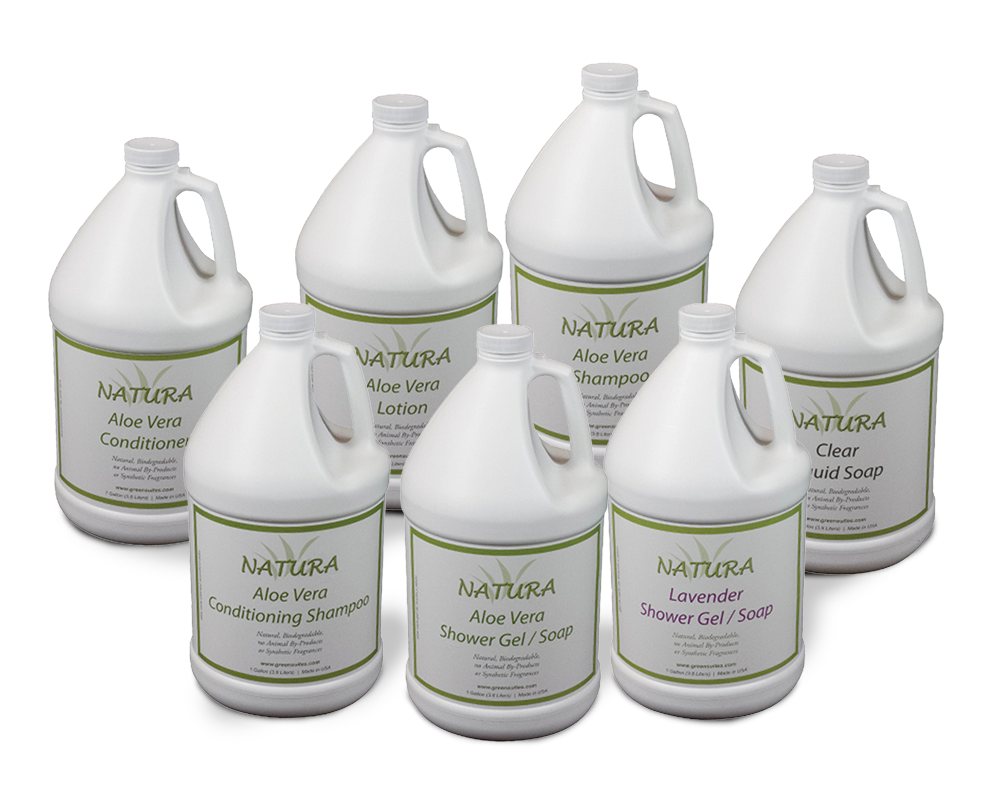 Green Suites Hotel Amenities proudly offers our Natura Bulk Hotel Amenities. They feature: